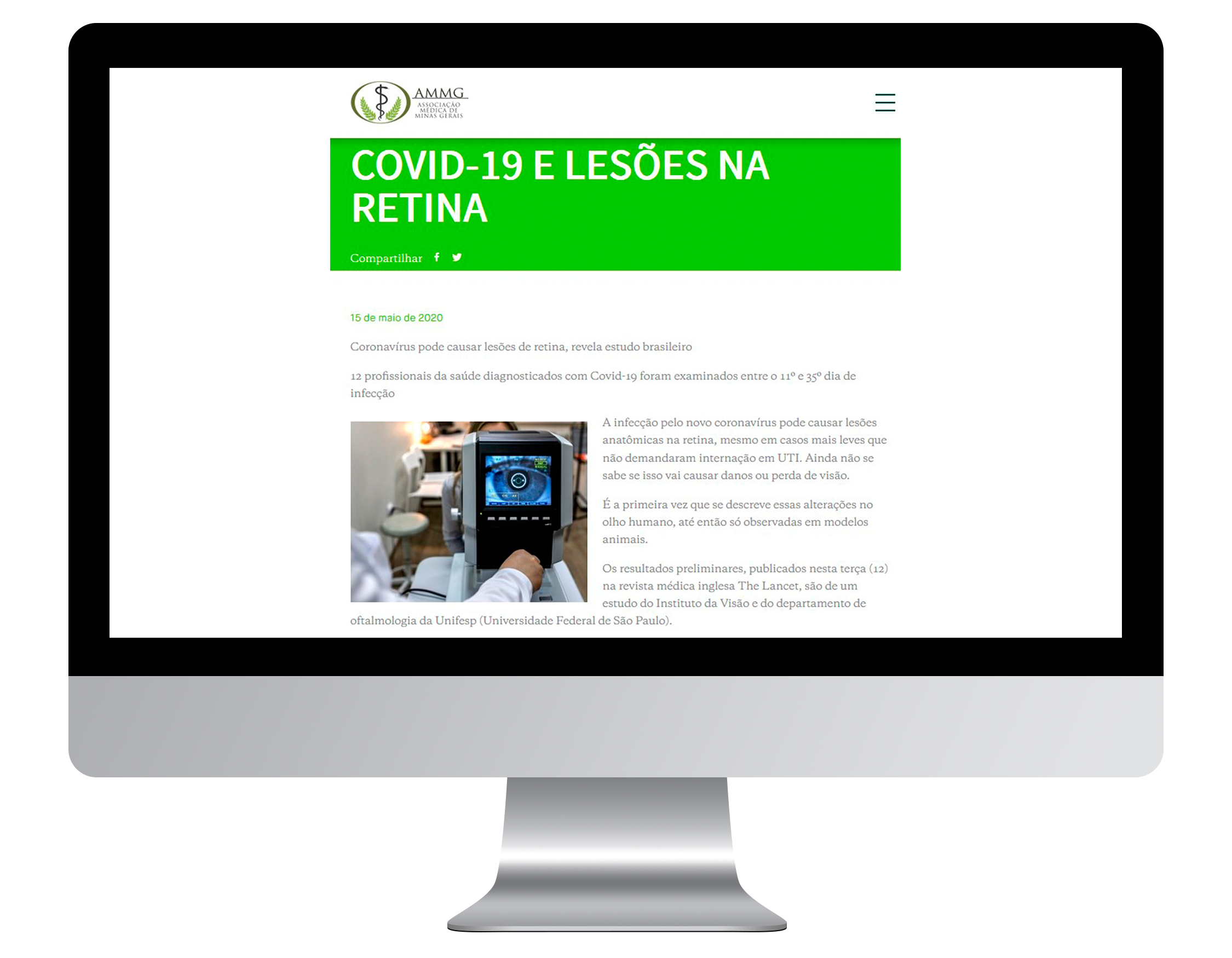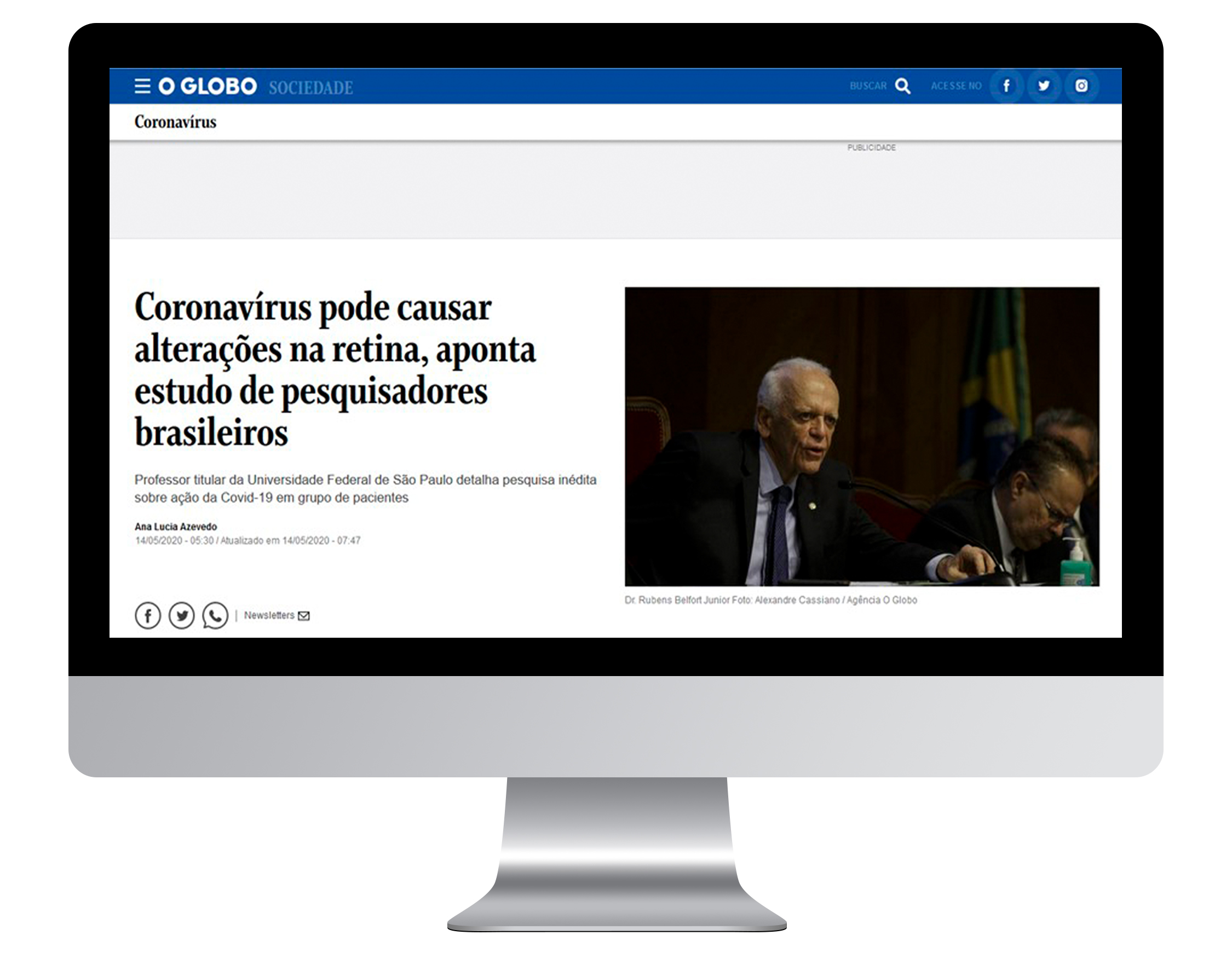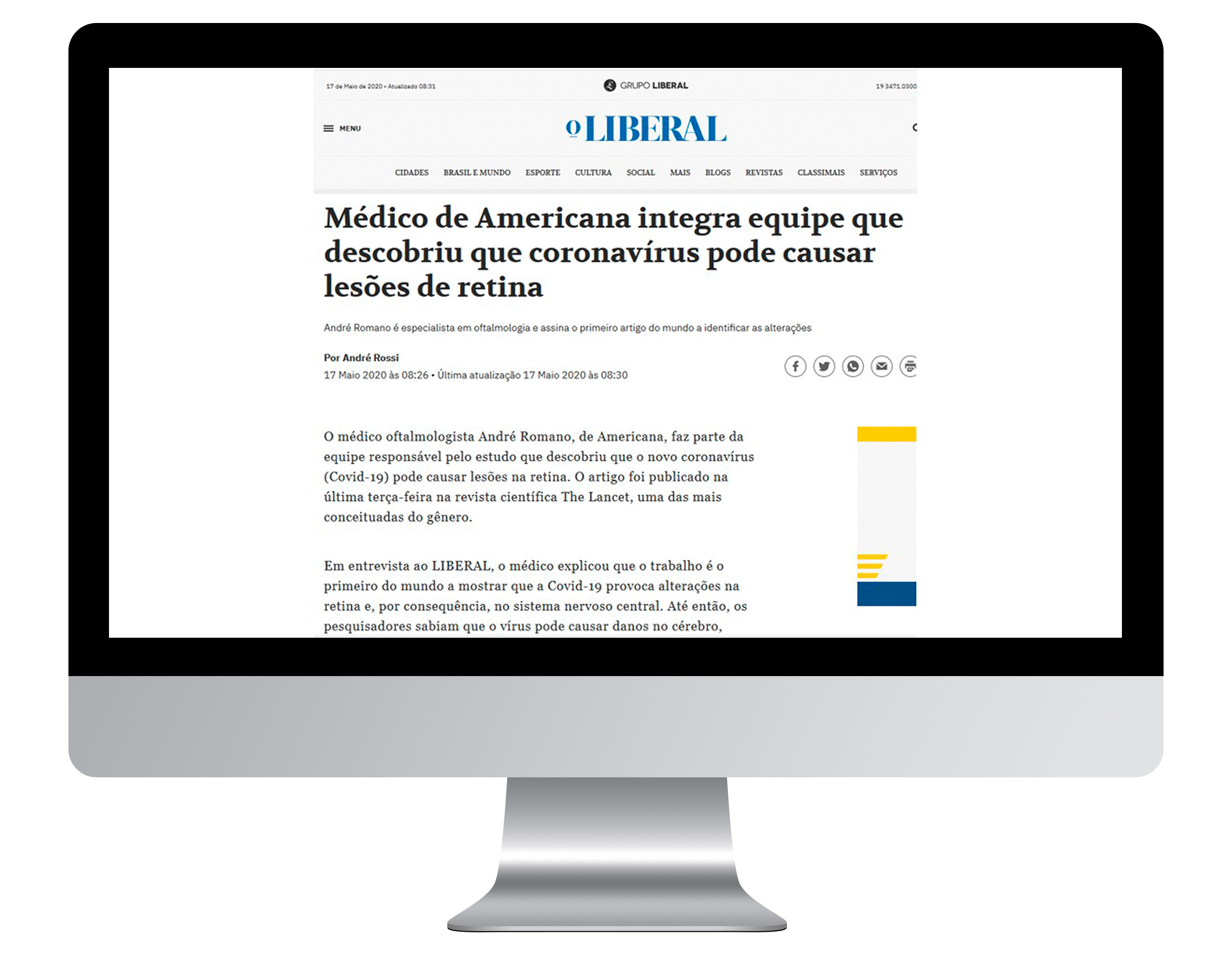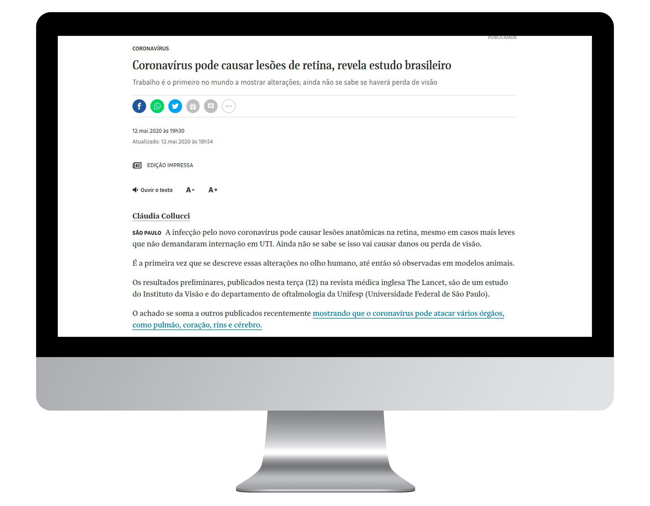 Pesquisa inédita, realizada por equipe de oftalmologistas do Instituto da Visão – IPEPO, aponta que pacientes infectados pelo novo coronavírus (Covid-19) podem apresentar alterações na retina. O estudo foi publicado na internacional e renomada revista científica The Lancet. Para ler o artigo na íntegra, acesse: https://www.thelancet.com/journals/lancet/article/PIIS0140-6736(20)31014-X/fulltext
